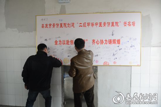 (凝心聚力/全员参与/团结拼搏/创建“二级甲等中医骨伤医院”签名墙)