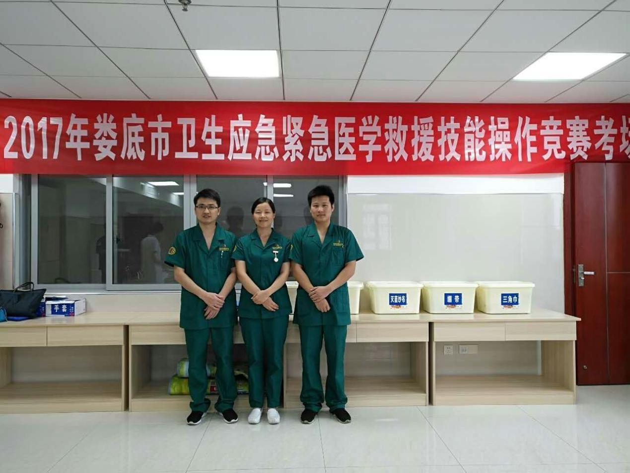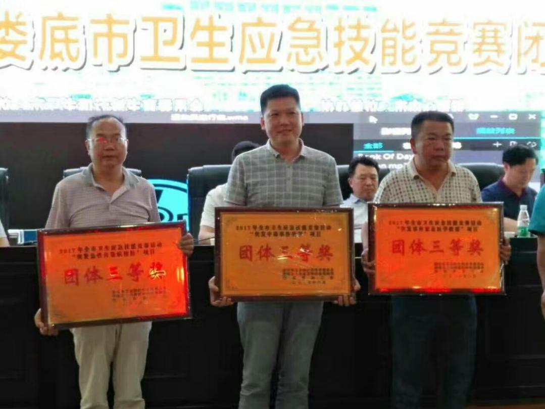 为进一步提升全市广大卫生应急工作人员业务能力和专业水平,8月3日,娄底市卫生计生委联合相关部门组织全市医疗机构开展应急救援演练活动。娄底市骨伤医院精心组织,院长刘卓华、院长助理彭伟平亲自领队,参赛队员彭花燕、冷文明、彭冠中以扎实的理论功底,娴熟的业务技能和“骨伤人”良好的精神面貌,获得团体三等奖。
