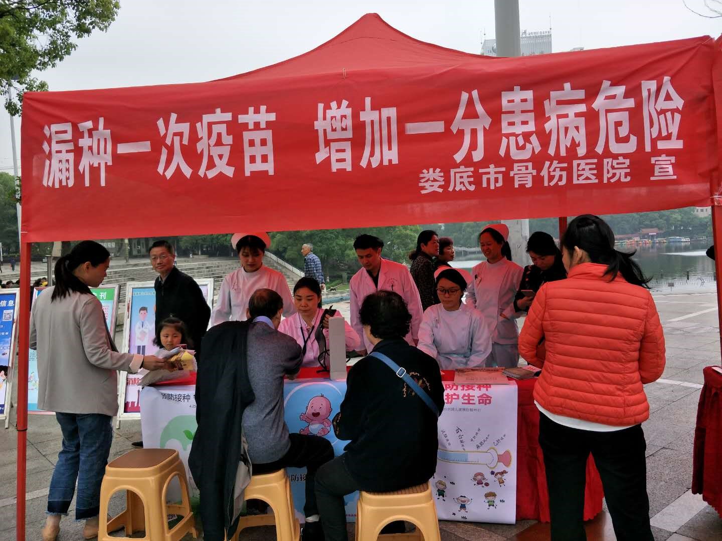 为向市民普及预防接种知识,4月25日,市骨伤医院围绕第32个儿童预防接种日主题“关注小环境、共享大健康、预防接种、守护生命”,在娄星广场开展现场义诊宣传活动。