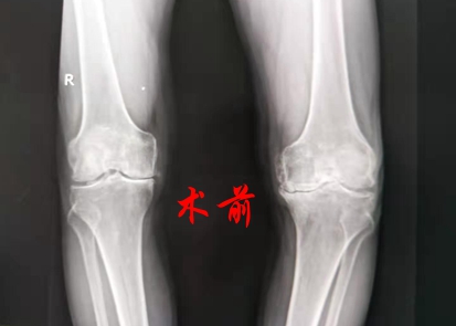 黄大伯是娄底双峰人,今年70岁的他,由于二十多年的膝关节骨关节炎和严重骨缺损,白天寸步难行,蹲下后无法站立,夜间平卧床上,双腿无处安放,最难受的是上下楼梯时膝关节剧烈疼痛。黄大伯靠吃止痛药和贴膏药缓解疼痛,疼痛难忍时,曾住院治疗过,但疗效甚微,平时走路不到200米就疼得难受,严重影响他的生活质量,让他身心俱疲。