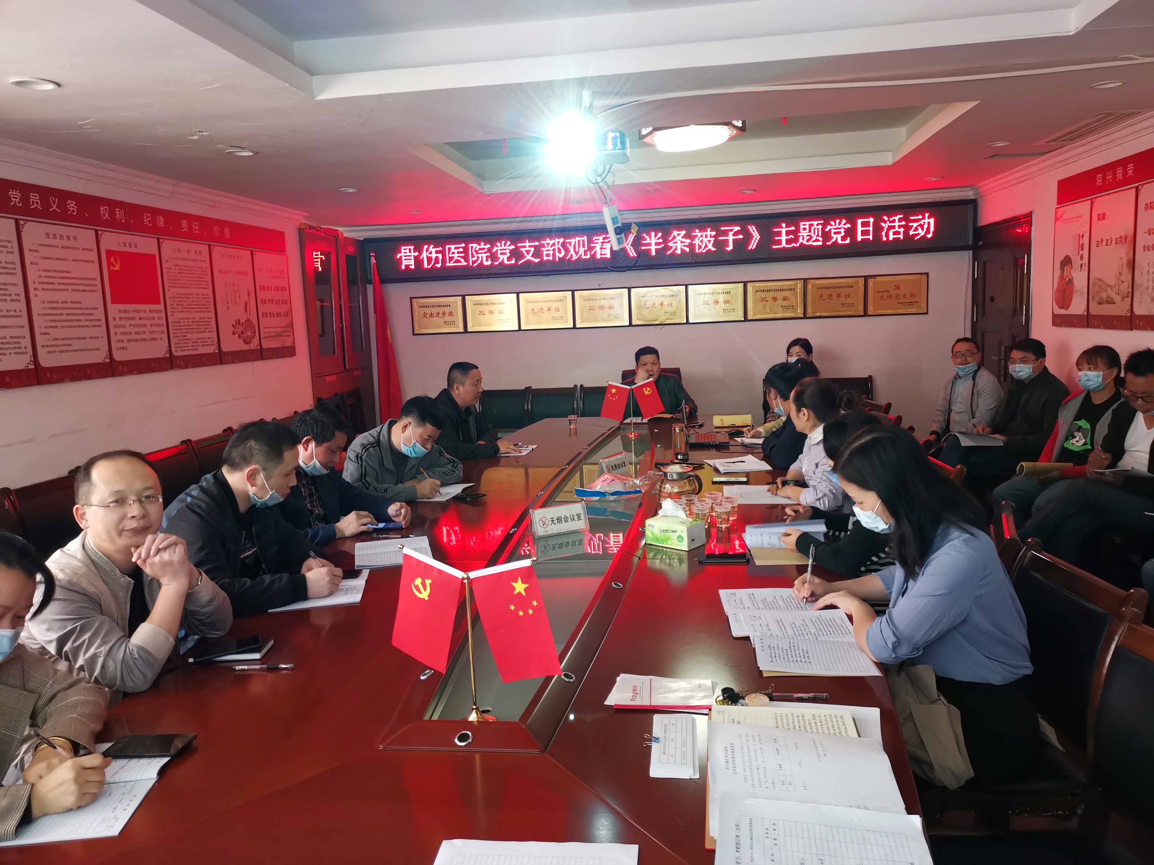 2020年9月17日,习近平总书记来湖南考察时,第一个考察点就是“半条被子的温暖”专题陈列馆,他指出要用好这样的红色资源,讲好红色故事,搞好红色教育,让红色基因代代相传。为进一步学习领会习总书记的讲话精神,重温艰苦长征岁月里的红色记忆,传承“半条被子”革命精神,密切党群血肉联系、提升党员干部服务群众意识,11月6日下午,娄底市骨伤医院组织全体党员在7楼会议室里观看了红色教育电影《半条被子》。