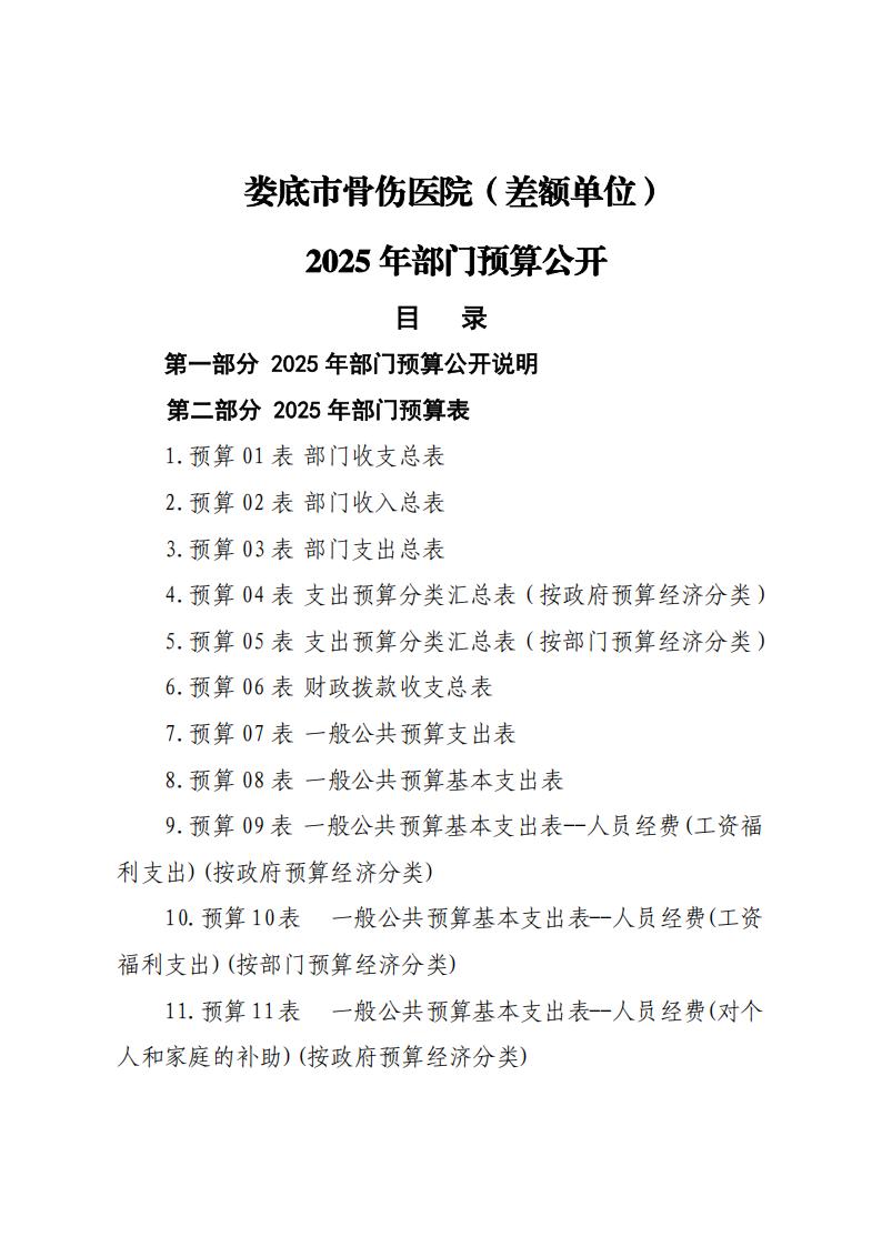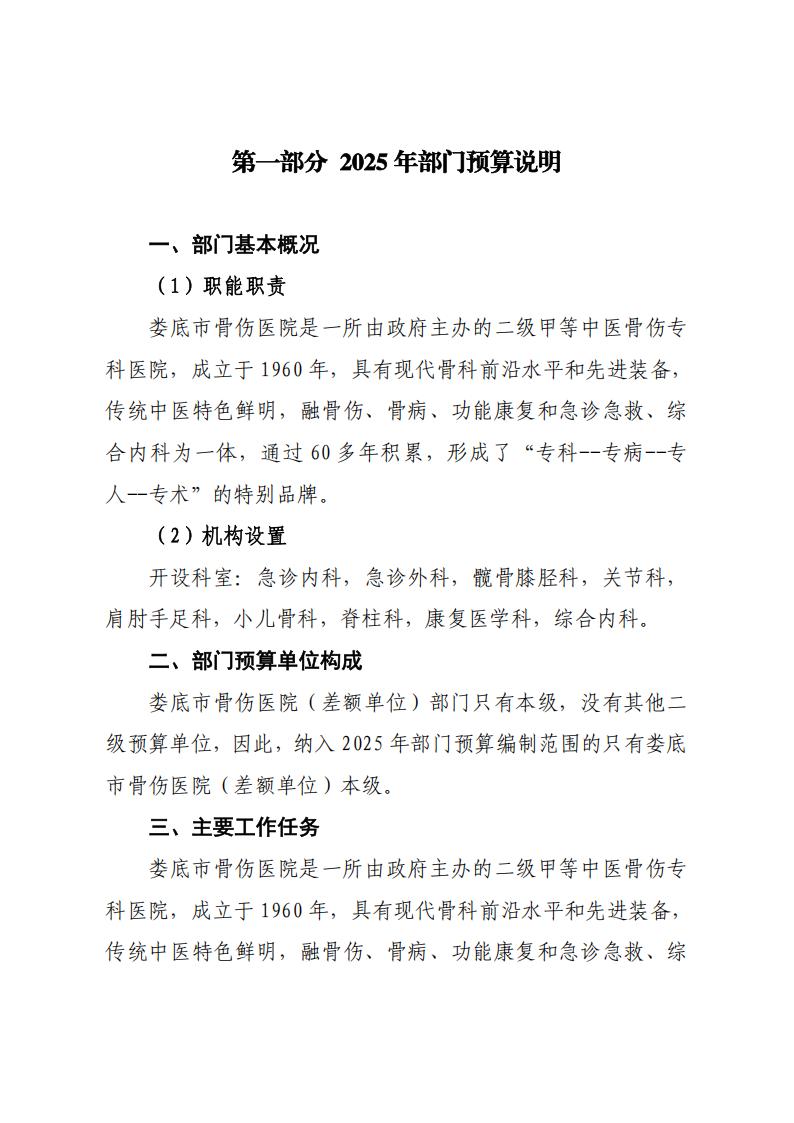 娄底市骨伤医院(差额单位)2025 年部门预算公开