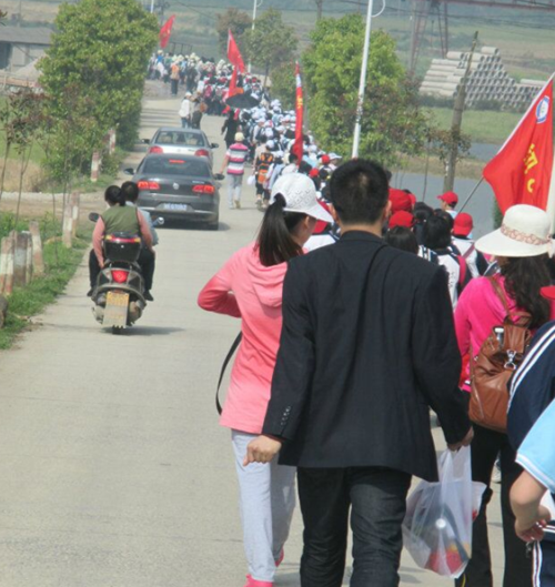 响亮的口号,飘扬的旗帜,统一的服装,整齐的队伍,使得沿路市民锄者忘其锄,行者忘其行。娄底市骨伤医院出动两辆救护车载着两支医疗救护队和急救包紧随其中,义务为此次远足活动全程保驾护航。